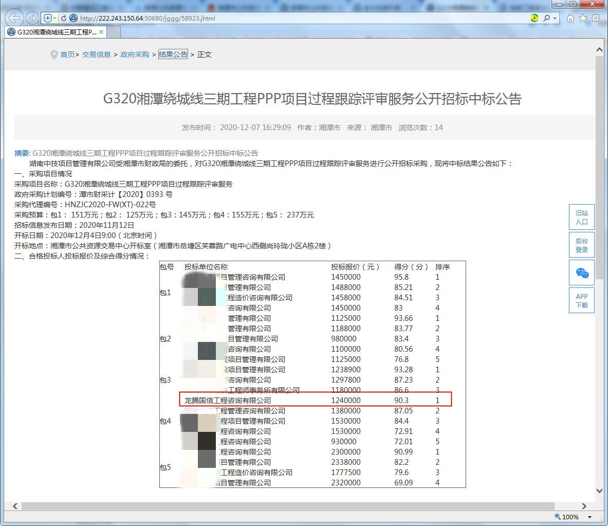 恭賀我司中標G320湘潭繞城線三期工程PPP項目過程跟蹤評審服務