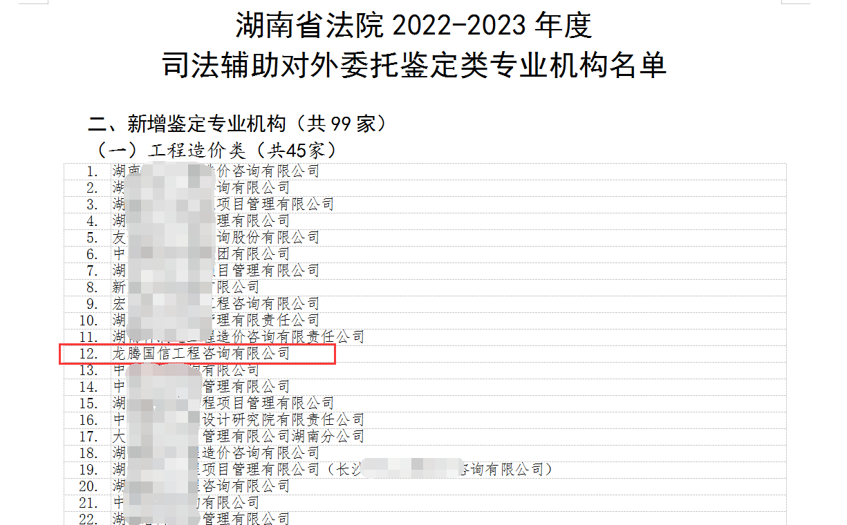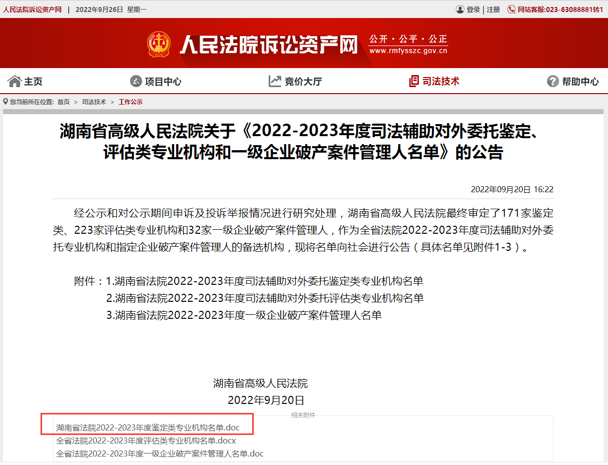 恭賀我單位入駐“湖南省法院2022-2023年度司法輔助對(duì)外委托鑒定類專業(yè)機(jī)構(gòu)名單”